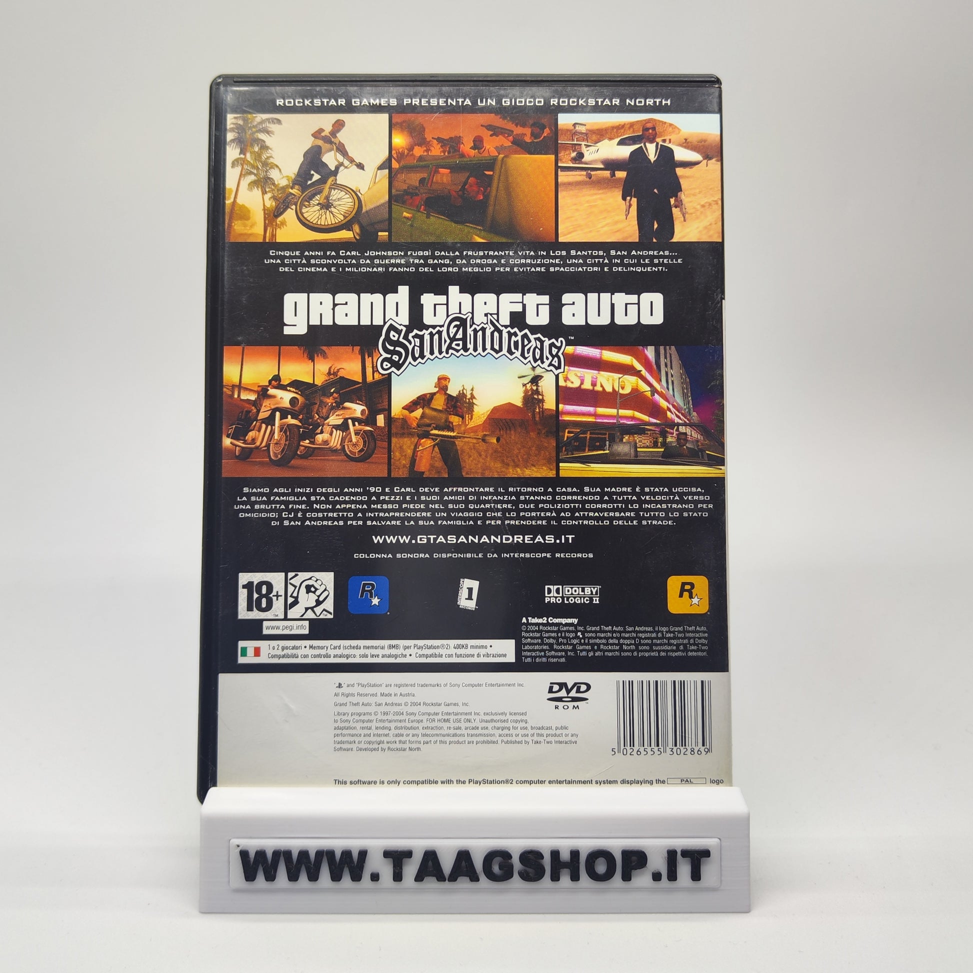 Torna a Los Santos e rivivi una delle esperienze più iconiche della storia videoludica con GTA San Andreas per PlayStation 2! Un titolo leggendario che ha ridefinito il concetto di open world, ricco di missioni, personalizzazioni e libertà assoluta d’azione.